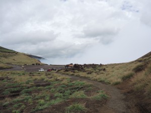 Ein weiterer Vulkan in der Kette der feuerspuckenden Berge in Nicaragua – aber diesmal ganz bequem mit dem Taxi. Es ist unglaublich aber man kann hier mit dem Auto bis an den Kraterrand fahren. Nachdem wir vom letzten Vulkanaufstieg immer noch Muskelkater haben .. eine Erholung! Es ist auch der erste Vulkan mit einer Mauer vor dem Kraterrand. Ein Parkplatz komplettiert das unwirkliche Bild keine 5 Meter vom Kraterrand entfernt. Wenn man bedenkt, dass wir hier oben schöne orange- leuchtende Schutzhelme tragen müssen, würde ich mein Auto auf jeden Fall hier parken! Einparken muss man jedoch rückwärts um im Notfall schnell wegzukommen!
