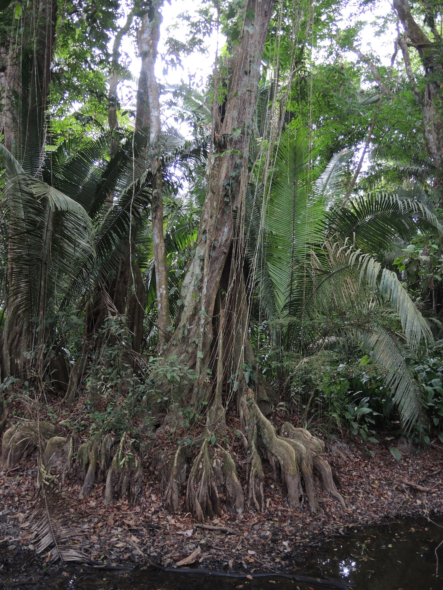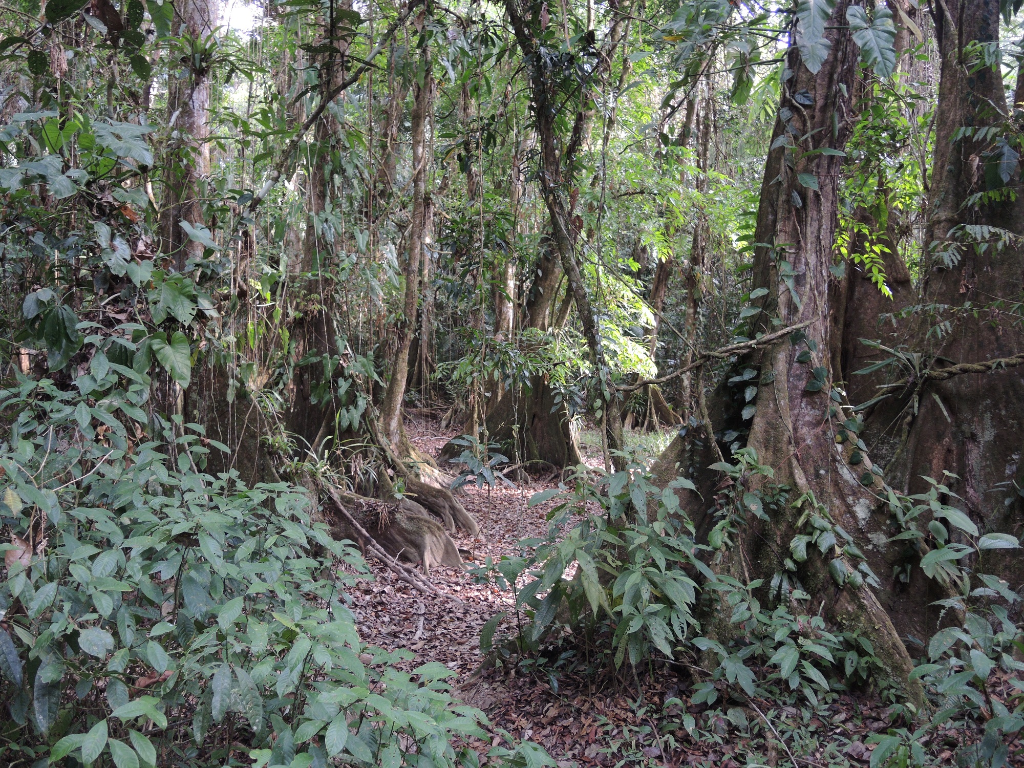 Ganz früh am Morgen geht es weiter. Ganz früh sind die meisten Tiere noch aktiv, die Luft ist frisch. Wir wandern den „Wari Loop“ – ca. 4 Kilometer grüner, frisch duftender Dschungel. Bäume mit riesigen Wurzeln, wie man sie aus den Regenwald- Dokumentationen im Fernsehen kennt. Riesige Farne, die höher sind als manche Häuserwand zu Hause. An allen Bäumen Kletterpflanzen und Lianen. Auf dem Boden alle paar Meter eine Ameisen oder Termitenstraße. Alles ist bedeckt mit altem Laub. Herrliche Ruhe.
