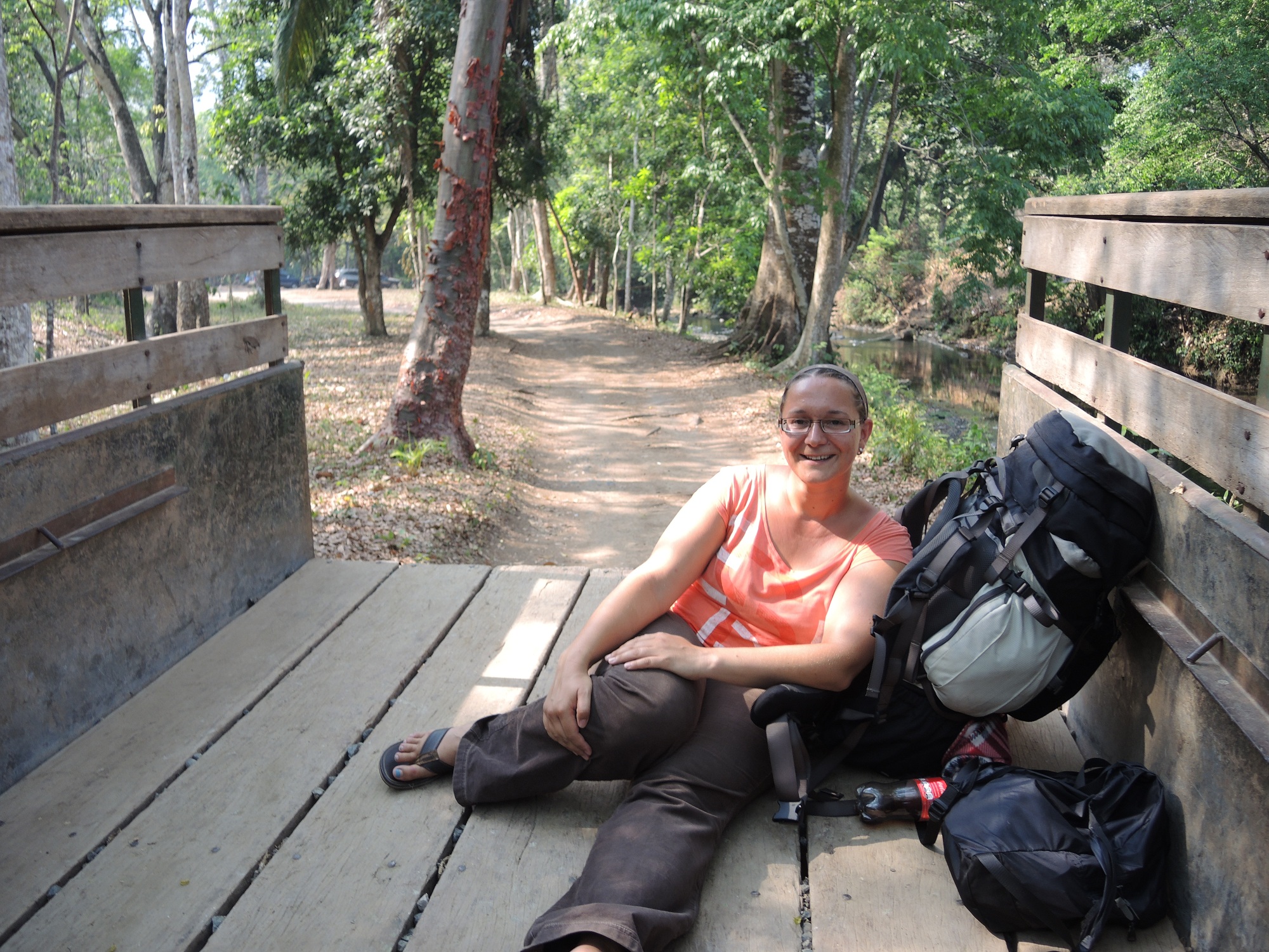Nach einer schweißtreibenden „Wanderung“ mit Gepäck ca. 15 Minuten ins Zentrum von Rio Dulce Town erwischen wir einen lokalen Bus Richtung El Paraiso. Er fährt zwar nicht direkt dorthin, verspricht uns aber dort rauszuwerfen. Perfekt!
