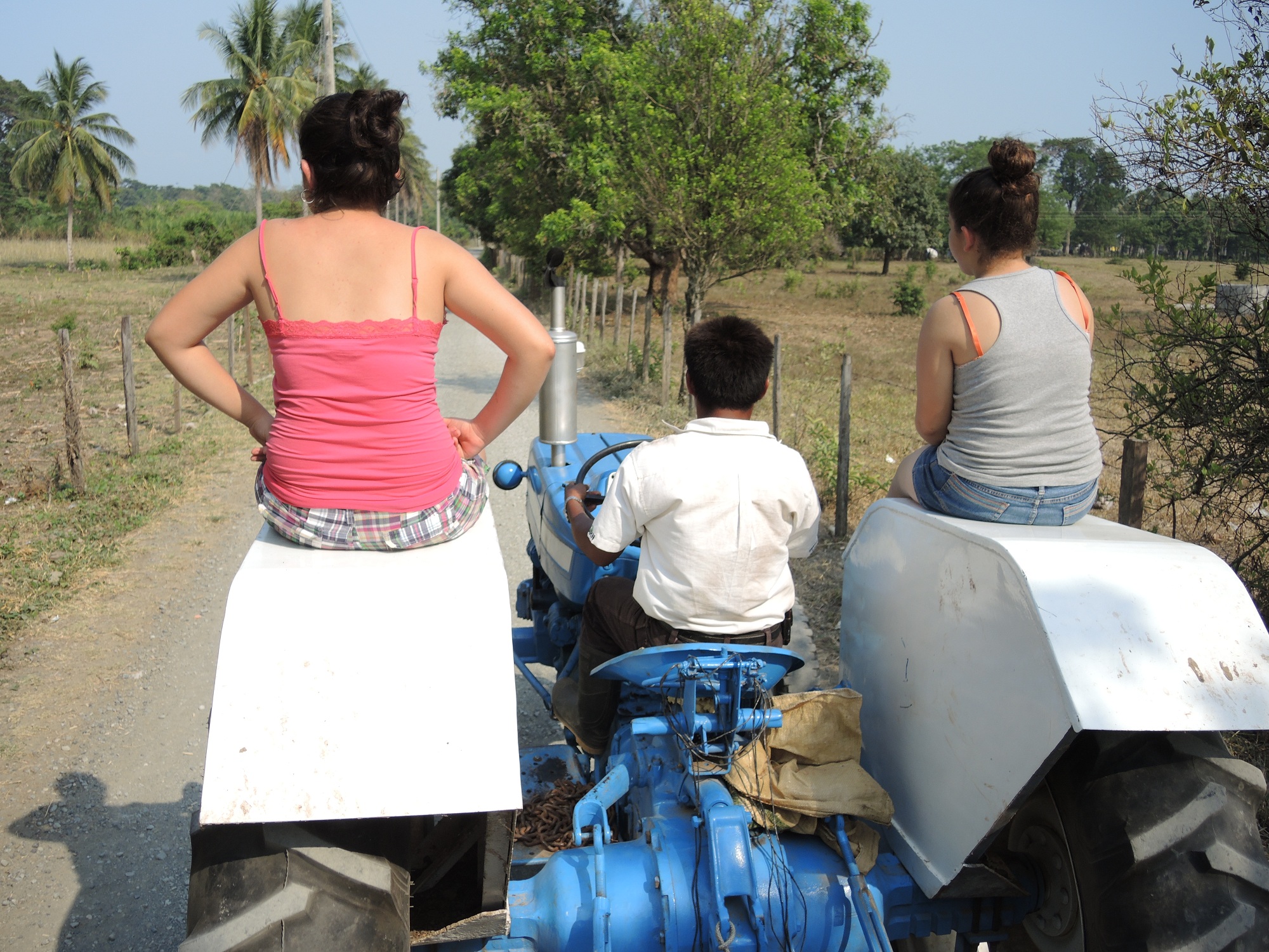 Hier gabelt und ein Traktor mit einem Holzanhänger auf und fährt uns zur Finca am See, wo man übernachten und essen kann. DANKE 😀