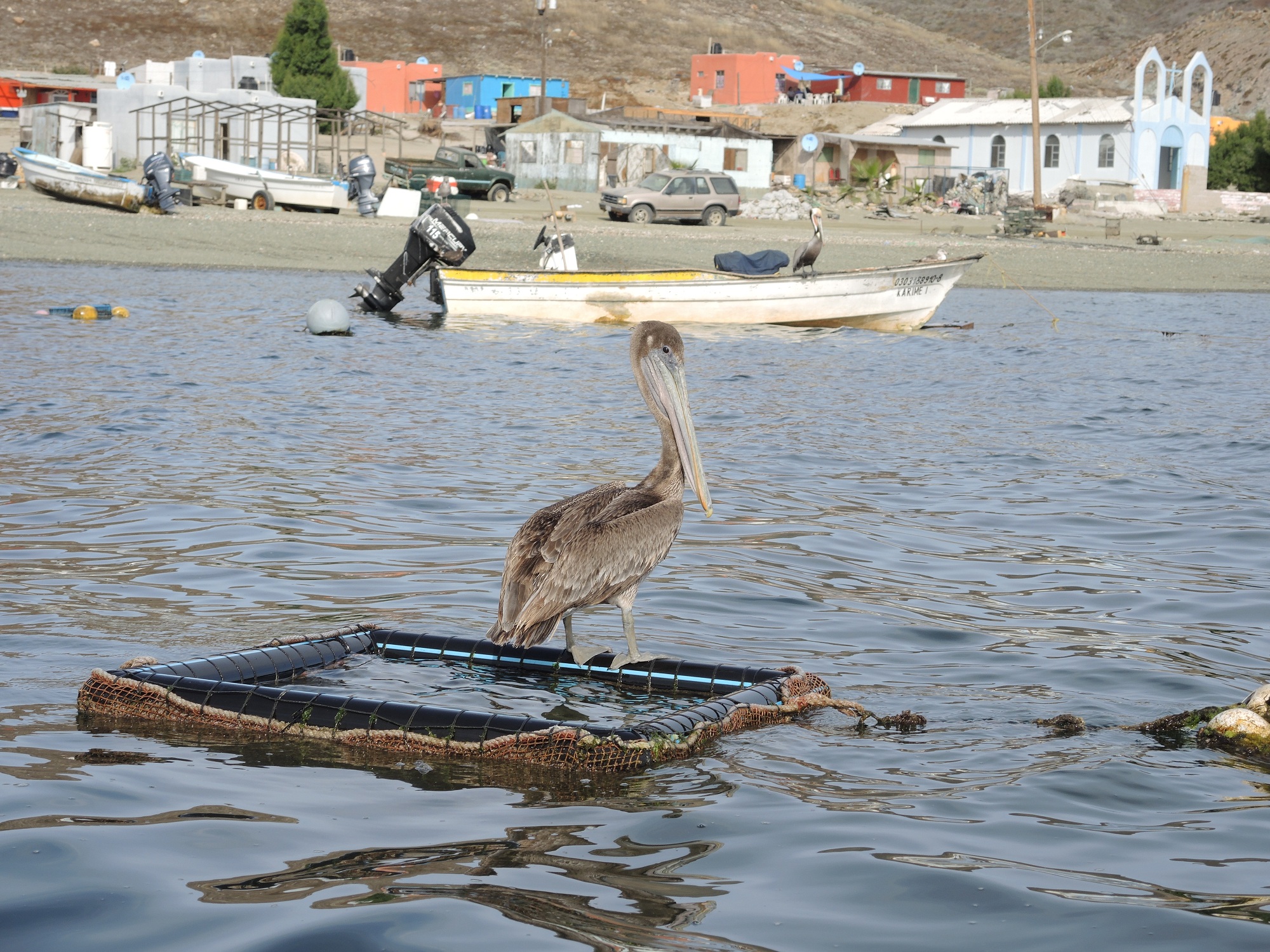 Hier tummeln sich jede Menge Pelikane. Am Strand, auf den Fischerbooten, auf den Seilen der Boote und auf allem, was herumschwimmt. Blos nicht selbst schwimmen, scheint die Devise zu lauten. Die Pelikane sind nicht scheu. Die schauen gespannt, was wir treiben. Manchmal rutscht einer dieser ungelenken Vögel vom Boot ab und fällt ins Wasser. Nun gut, bei der Körpergröße kein Wunder. Diese Vögel sind echt groß. Nur die Andenkondore können noch größer werden. In den Schnäbeln der Pelikan finden bis zu 11 Litern Wasser Platz – da kann man schon mal runterfallen ..